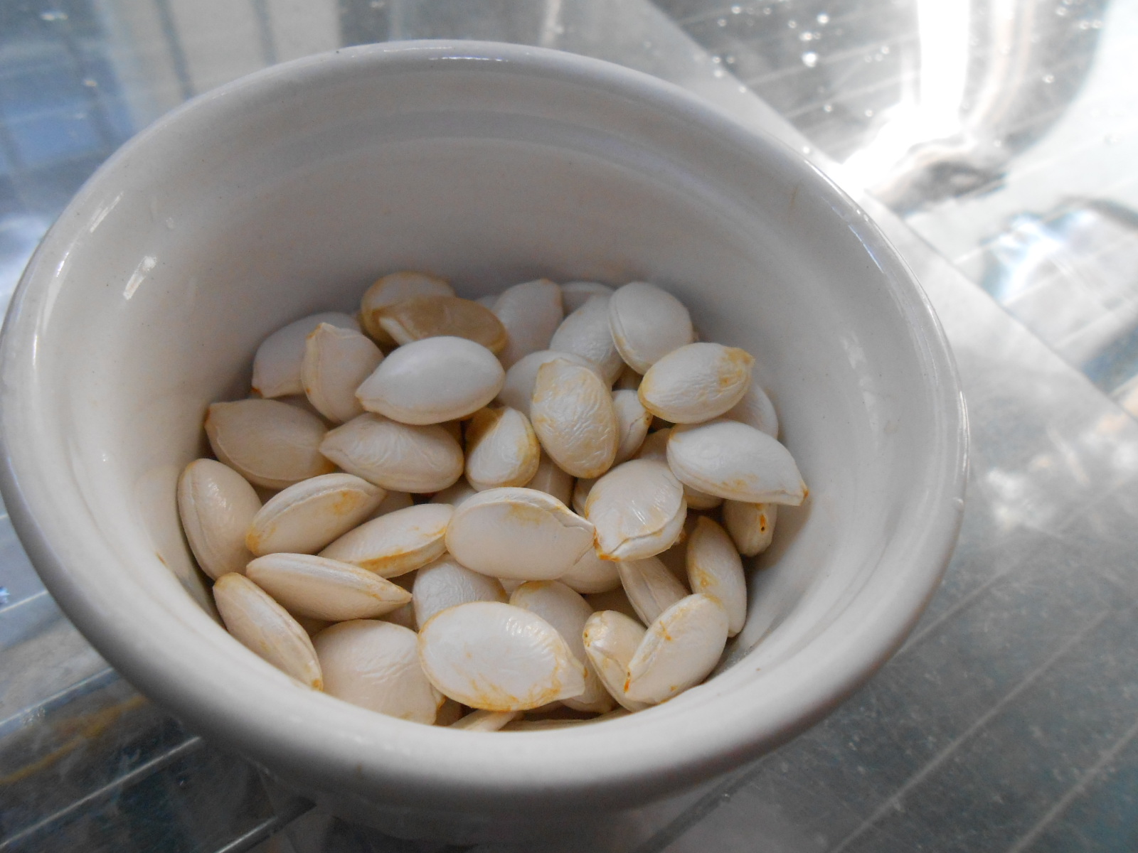 坊ちゃんカボチャの種がですね、殻が薄めでぷくっと中身が詰まってる風のおいしそうな種でしたので洗って乾かしておきましたー。