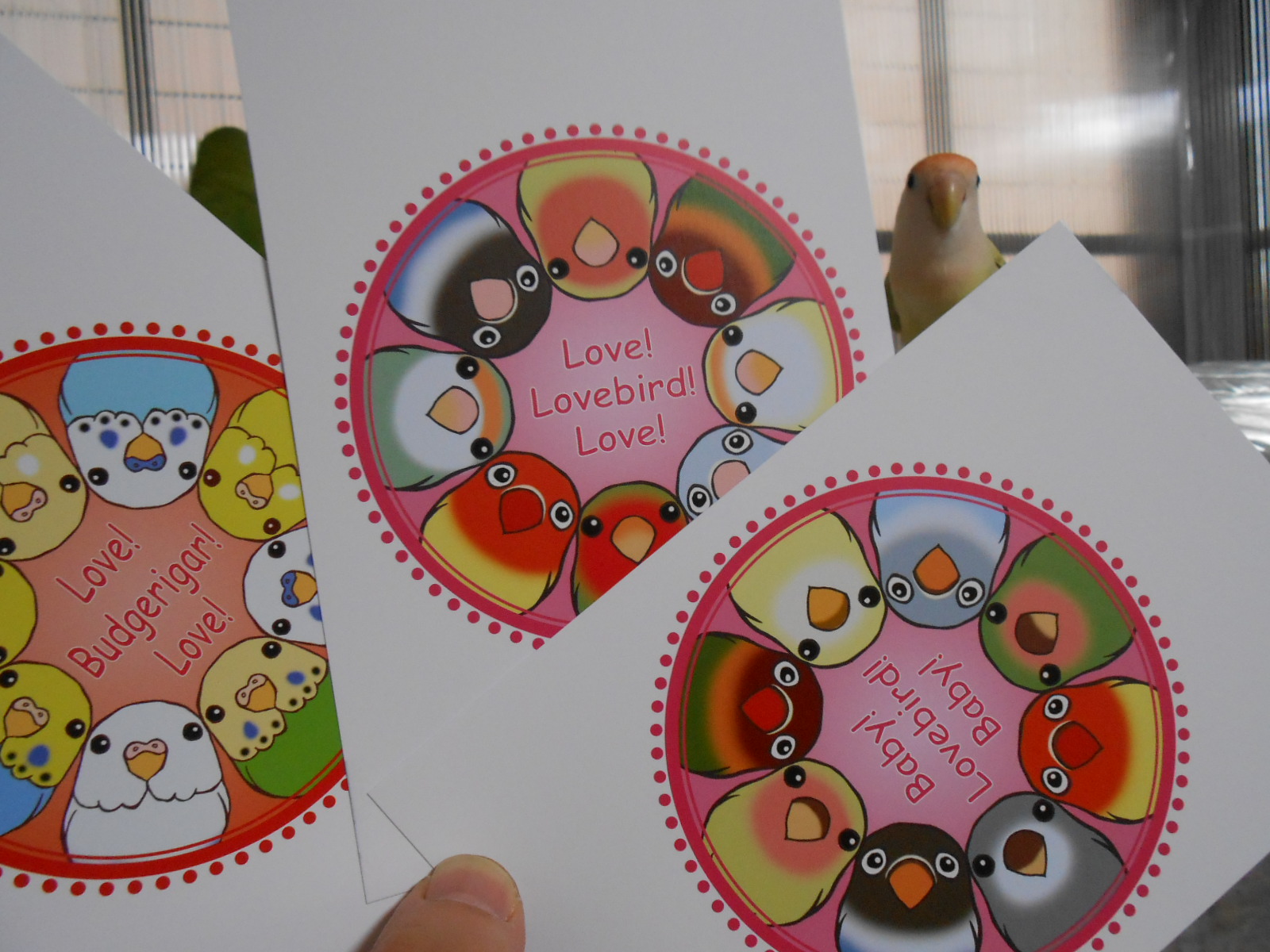この2枚のラブバードさんのカードの違い、わかります?見りゃわかるか??