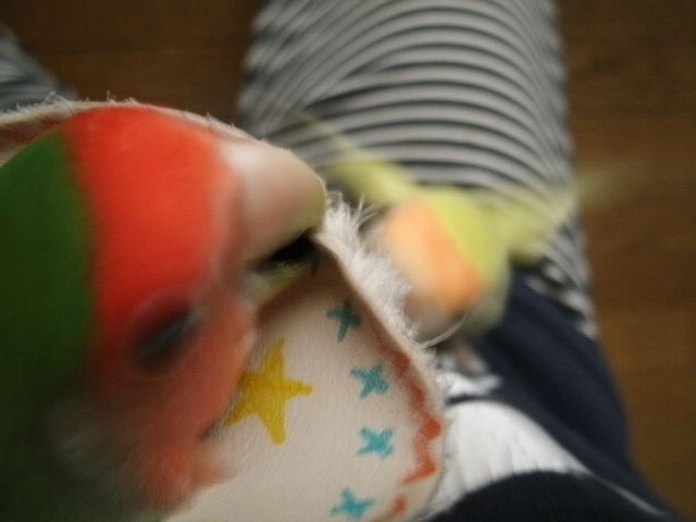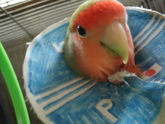 おばさんは自咬対策を一生懸命考えている・・・・ようだが、なかなか鳥さんの賢さに追いつかない