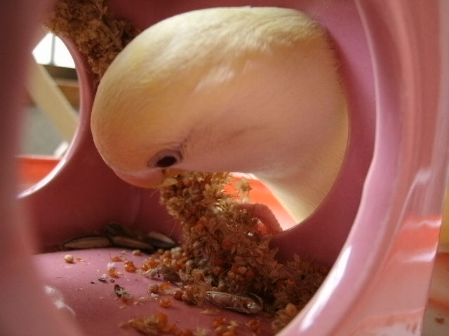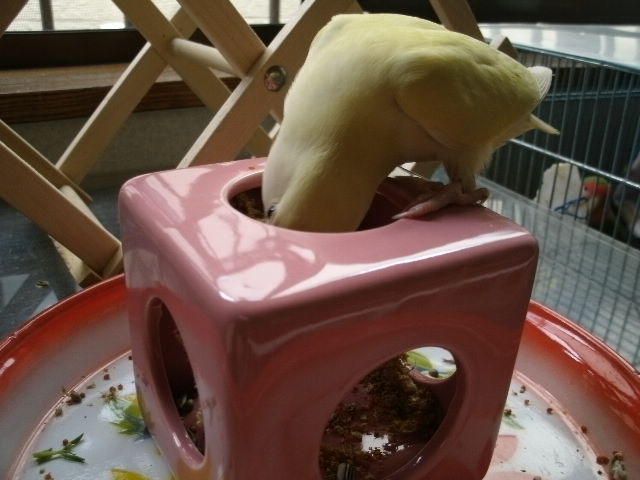 飼い鳥さんゆえに?ちょっとおやつの入れ物が変わるとおやつが入ってることに気づかない