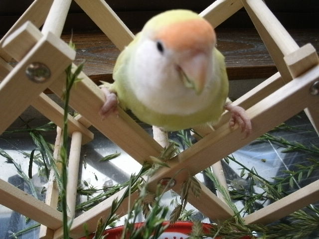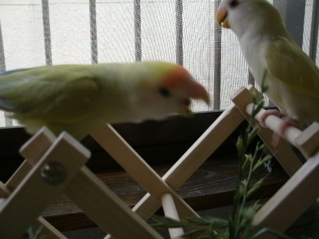 年上インコさんたちを若いコたちと別に遊ばせようと思っても、シニアインコさんたちのリズムはあんまり変わりませんねー、出たくなきゃ出ないし出たきゃ出る。