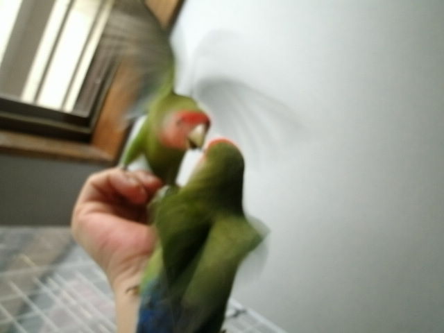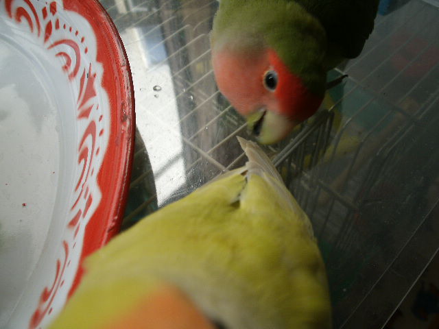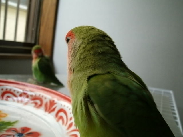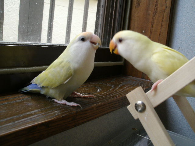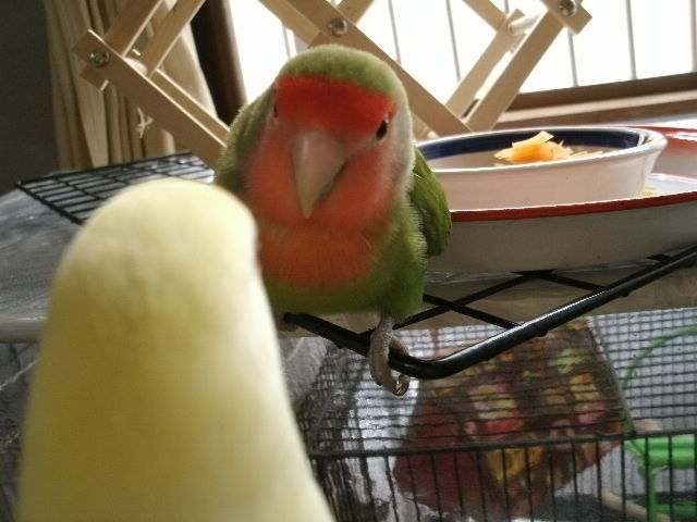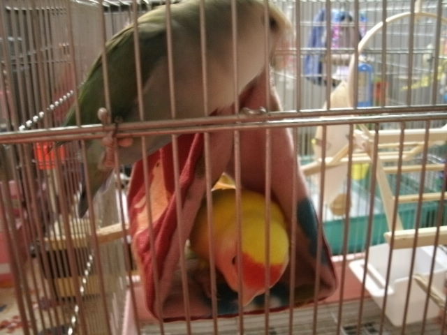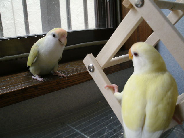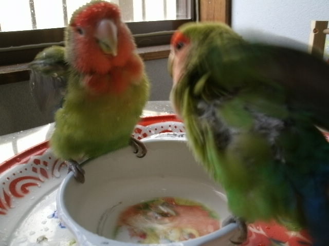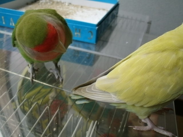 ちびっこの振る舞いには大人インコさんのほうが引いちゃったりするようで~~