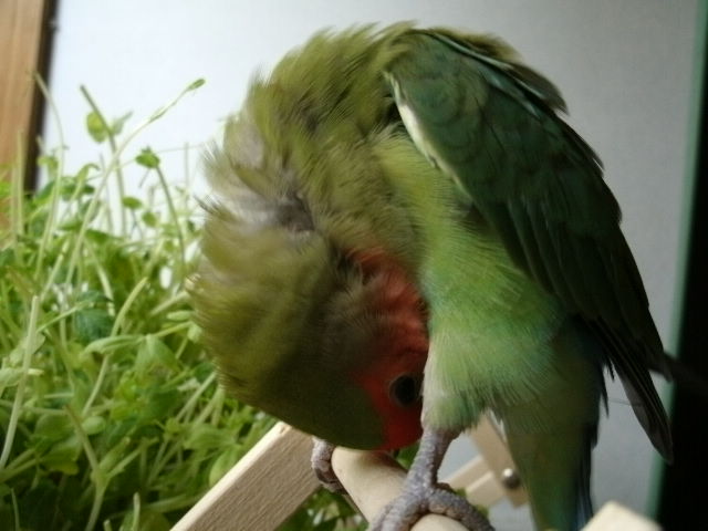 おばさんの全くの無責任発言、場当たり発言をいたしますと(ちょっとハトさん風だわ)おばさんちのぴーちゃんがカイカイする要因のひとつとして換羽があると思いますの。ええ、おばさんちの場合ですが。