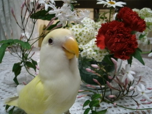 そんなおばさん的母の日の贈り物でしたが、カーネーションに添えたジャスミンの香りがおじぃは大嫌いで(知ってたけど嫌がらせしたのよ)、気がついたら花が外に追いやられて置かれていた。何すんだよ~~っ!