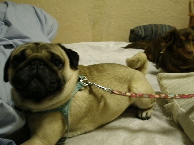 初日に悩まされた(おもしろくて)パグ君のいびきも慣れれば子守唄にも聞こえ、おばさんを眠りへと導いてくれますのよ。